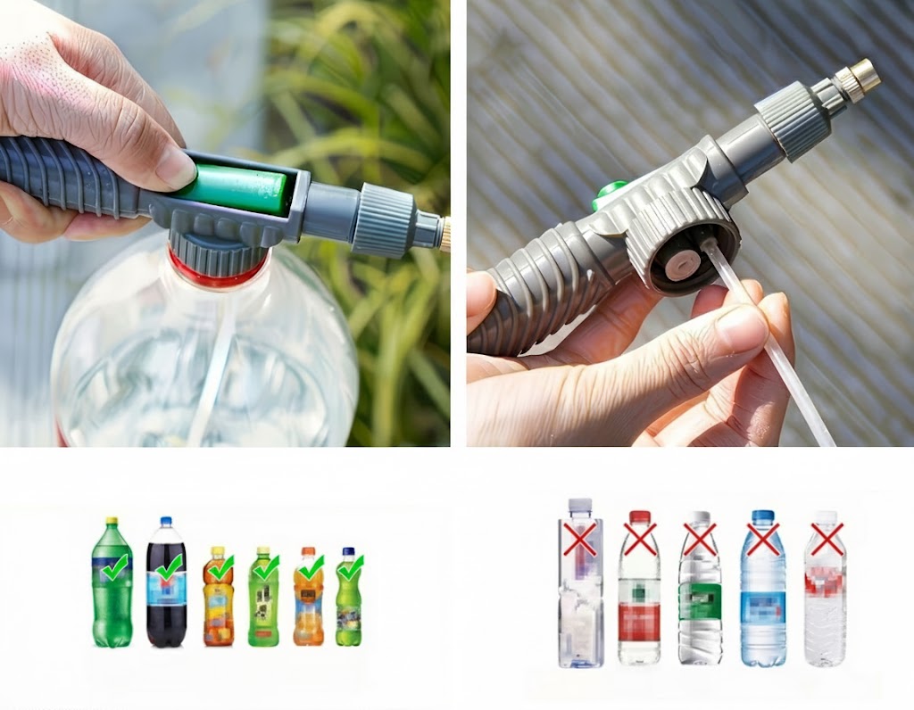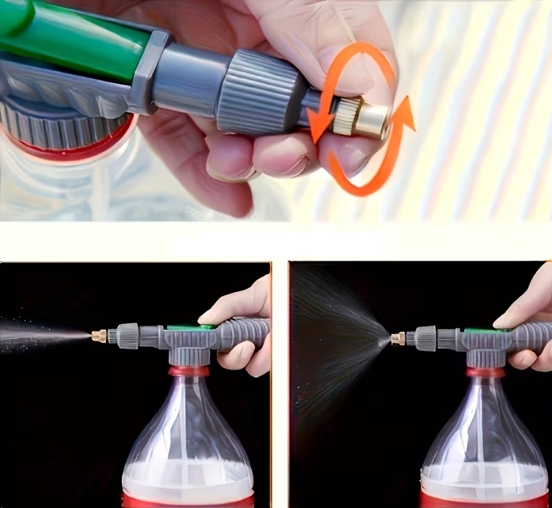 - Kompatybilna z butelkami PET – zamienia zwykłą butelkę po napoju w funkcjonalny opryskiwacz.